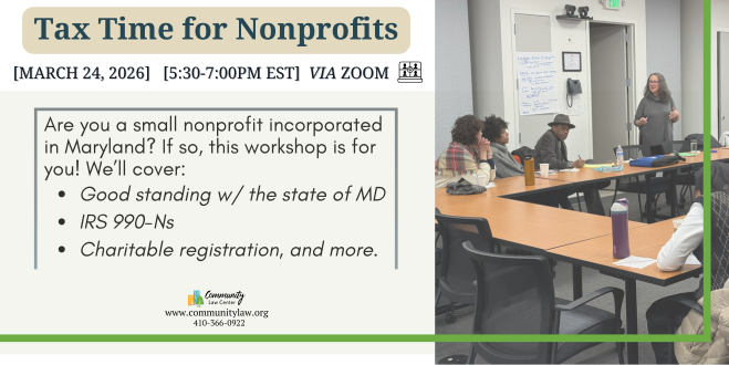 In this 1.5 hour workshop, attendees will see an overview of two of the main fiscal sponsorship models. Attendees will learn what it means to have a fiscal sponsor and what the legal implications are for both sides of the relationship. We will also discuss the pitfalls in this relationship as well as the benefits and downsides of each model of fiscal sponsorship (or its alternatives)? This workshop is appropriate for any group thinking about fiscal sponsorship in Maryland.